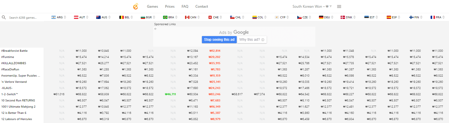 All the best prices for Nintendo Switch eShop games – South Korean Won